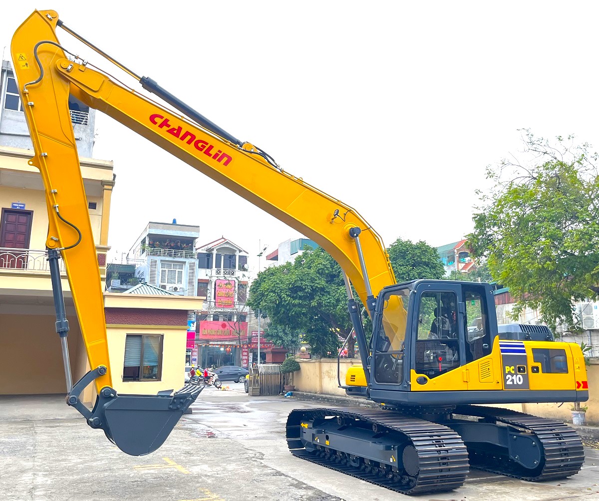 Máy xúc cần dài Changlin PC210-8 trọng lượng 22,5 tấn, khung gầm cần chắc khỏe, gầu xúc 0,7m3, quay toa nhanh 12 v/p, trang bị động cơ 6D102(112 kW) nổi tiếng bền bỉ “lì lợm” làm việc liên tục 3 ca/ngày không nóng máy có năng suất, tốc độ đào xúc được khách hàng đánh giá là cao hơn so với máy xúc cần dài Kobelco SK200-8 trong khi hệ thống quay toa vẫn bền bỉ như máy xúc cần dài Komatsu PC200-8.
